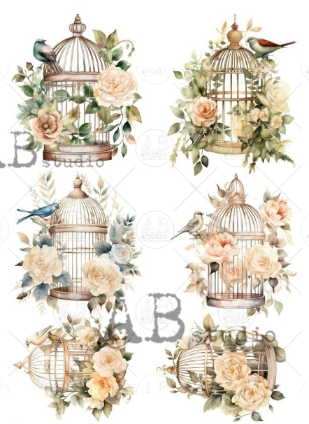 Papier de riz 6 cages oiseaux 142