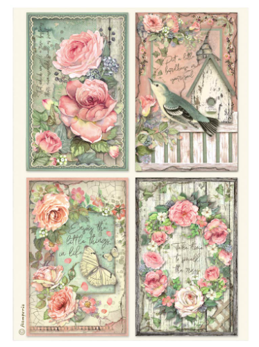 Papier de riz maison des roses 4 cartes